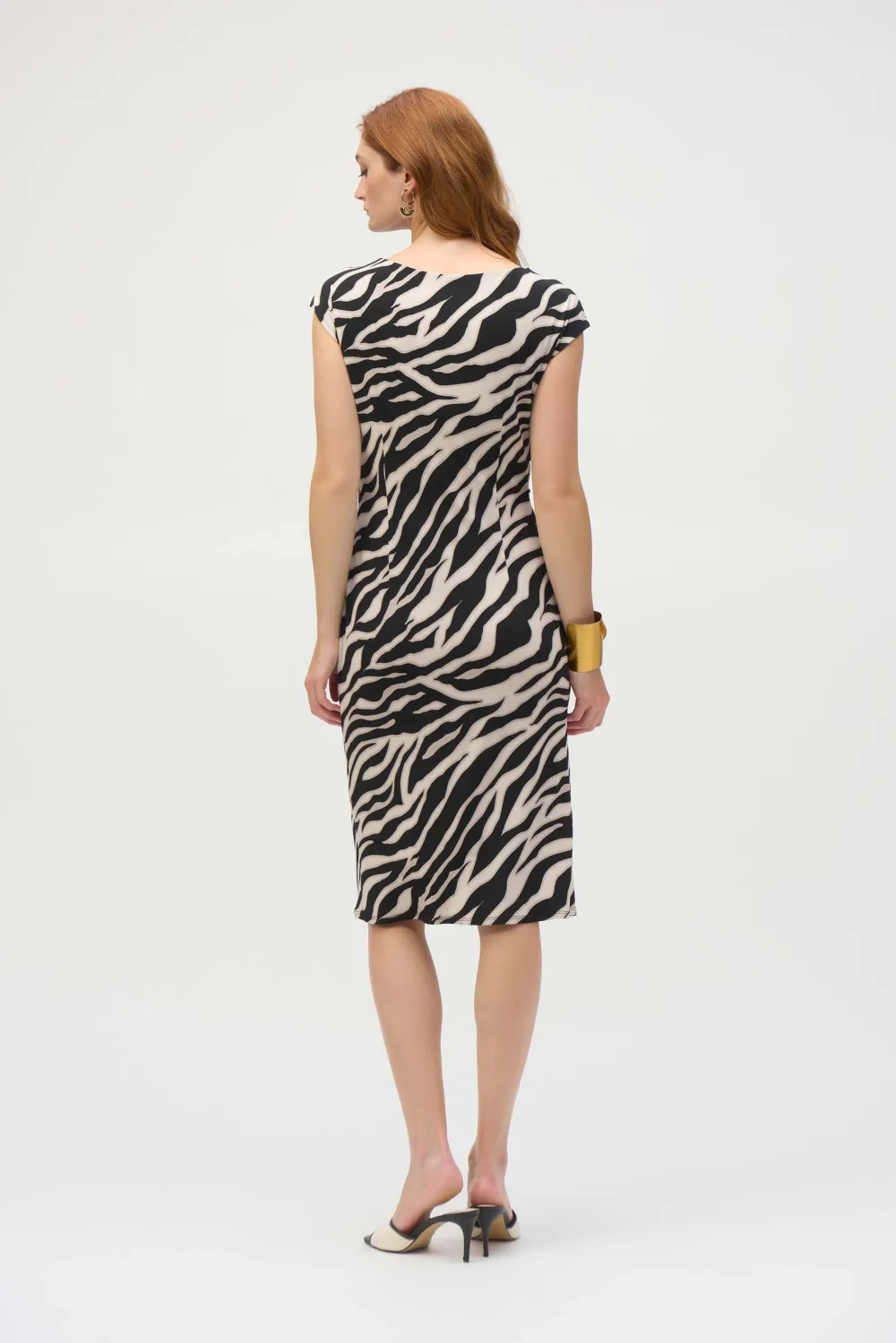 Tutustu Joseph Ribkoffin polvipituisen bodycon-mekon viehätysvoimaan, joka sopii täydellisesti illanviettoon. Tässä rypytetyssä halkiomallissa on hienostunut kaula-aukko ja silmiinpistävä eläinkuvio, joka tarjoaa sekä tyyliä että mukavuutta. Lyhyet, suorat hihat korostavat sen naisellista vetovoimaa, joten se on jokaisen vaatekaapin välttämättömyys.
