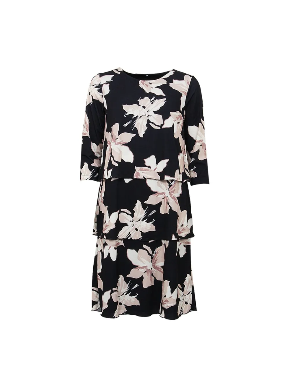 Monipuolinen ja mukava trikoomekko. Laadukas tekninen trikookangas joustaa mukavasti jokaisessa liikkeessä ja laskeutuu kauniisti. Mekon kukkakuvio luo hillityn, mutta kiinnostavan kontrastin, joka sopii helposti erilaisiin asuihin. Tämä mekko on arjen luottoasu, joka tuntuu pehmeältä päällä ja toimii hyvin yksinään tai kerrospukeutumisen osana. Materiaali joustaa ja on helppohoitoinen, joten tunika sopii jokapäiväiseen käyttöön.