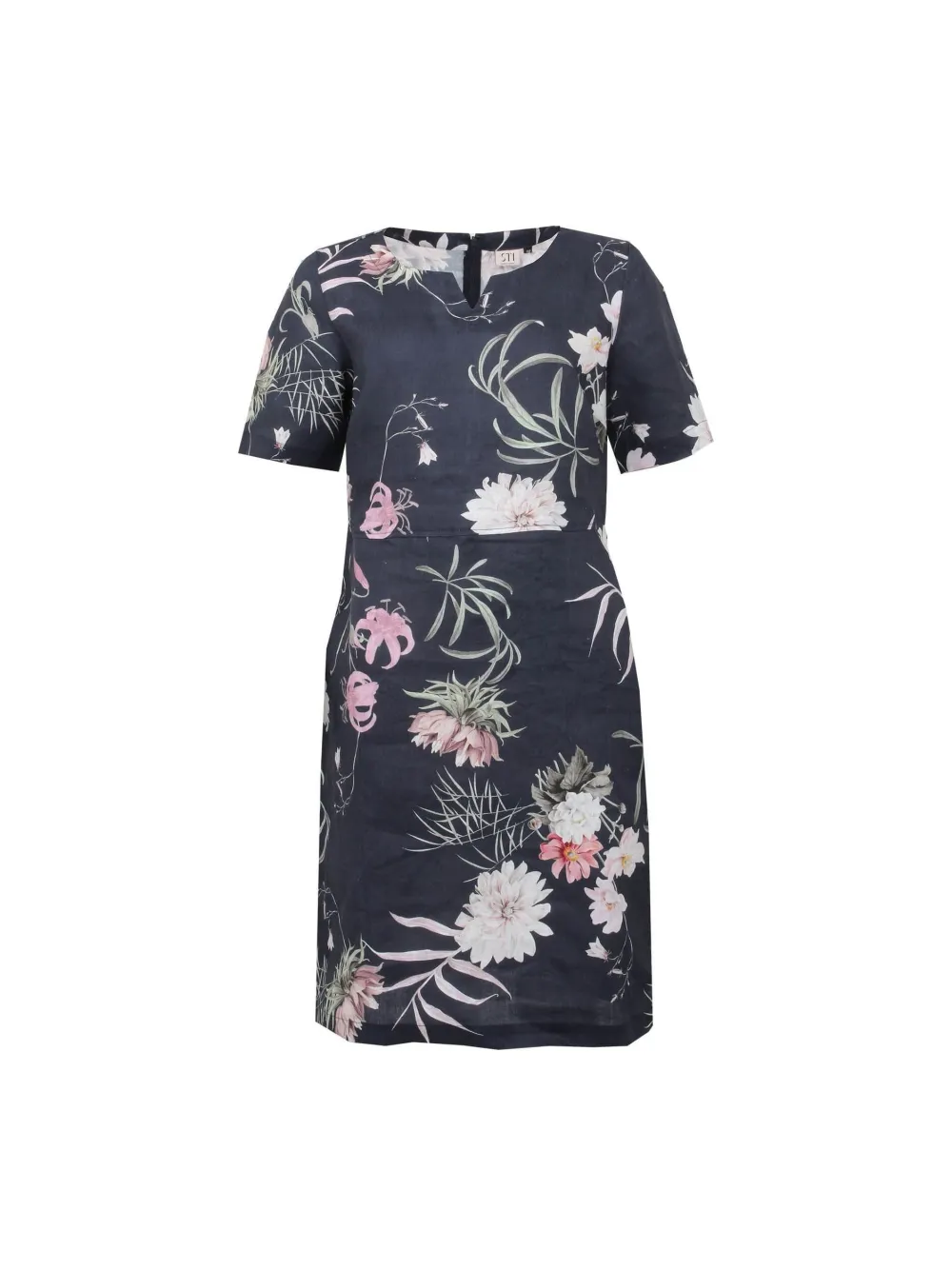 Tyylikäs ja kesäinen S.T.I -pellavamekko tuo ripauksen raikkautta pukeutumiseesi. Tummansininen pohjaväri yhdistettynä hempeisiin kukkaprintteihin luo ajattoman ilmeen, joka sopii niin arkeen kuin kesäjuhliin. Mekossa on naisellinen ja vartaloa imarteleva leikkaus, lyhyet hihat sekä kauniisti viimeistelty pieni V-halkio pääntiessä.