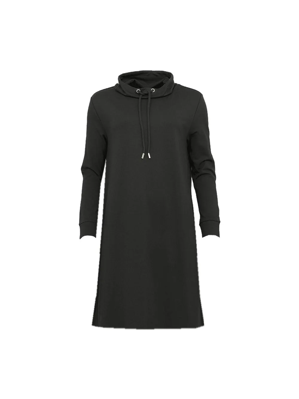 Korkeakauluksinen, ryhdikäs mutta rento trikoinen mekko. Materiaali todella miellyttävää, korkealaatuista viskoosisekoitetta. Suora malli, jossa helmassa halkiot.