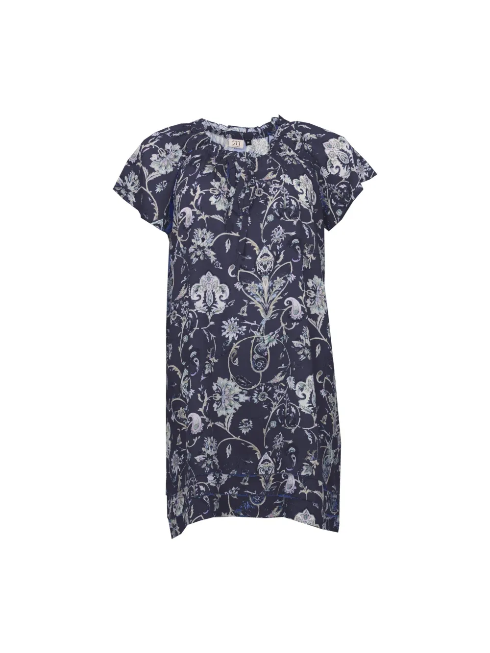 Vilpoisa viskoositunika , jossa rypytetty pääntie nauhoilla. Helmassa on kauniit kerrostetut laskokset.