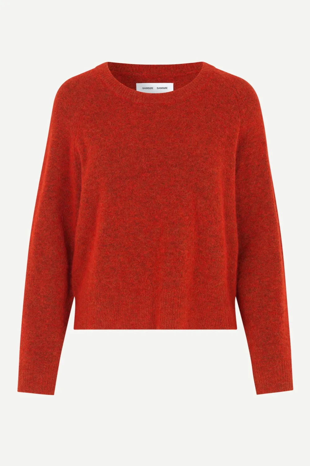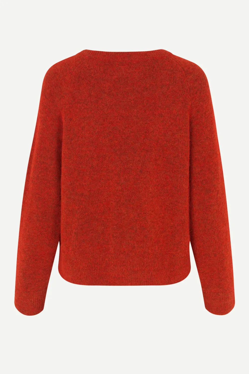Samsoe&Samsoen pörröpintainen villaneule väljää mitoitusta. O-pääntie, raglanhihat, helmassa löysä resori.