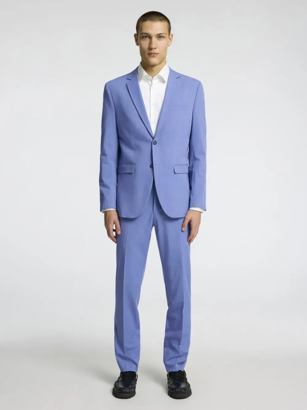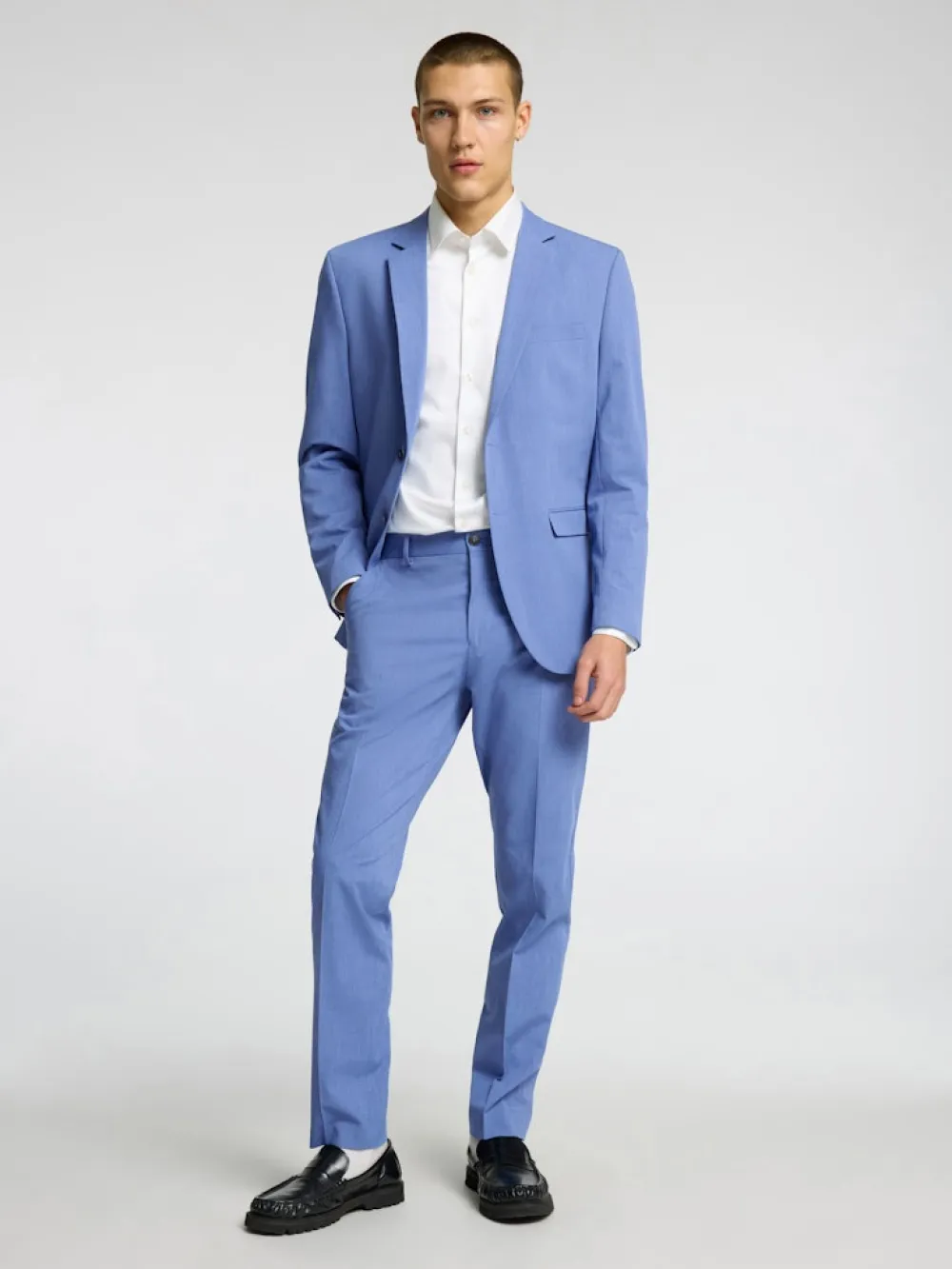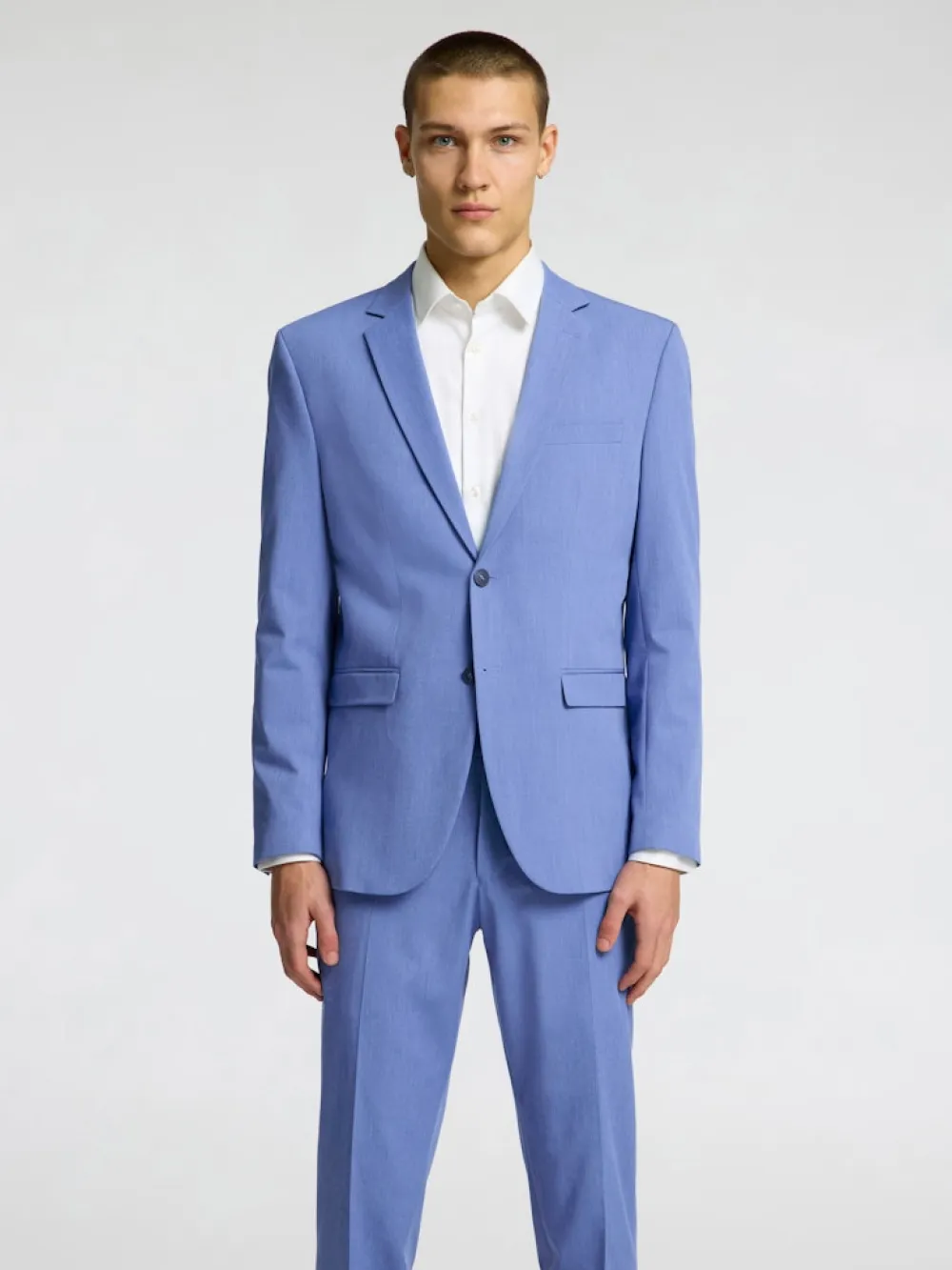 Selected Homme miesten yhdistelmäbleiseri. – Yksirivinen – Lovitetut käänteet – 2 nappia – Pitkät hihat napitetuilla hihansuilla – Rinta- ja etutaskut – Vuorattu – Slim fit
