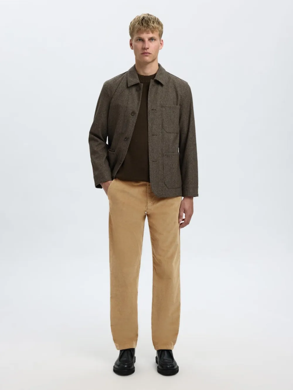 SLH196 Straight Miles -vakosamettihousut, väri Kelp