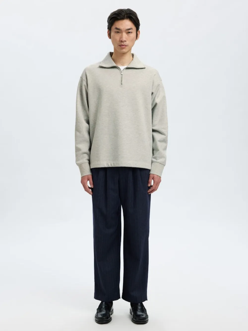 Rento ja monikäyttöinen vetoketjullinen collegepaita vaaleanharmaassa sävyssä, valmistettu pehmeästä puuvillasta. Huppari on suunniteltu arkikäyttöön ja se yhdistyy vaivattomasti niin farkkujen kuin treenihousujen kanssa, täydellinen valinta vapaa-ajan asuun tai kerrospukeutumiseen.