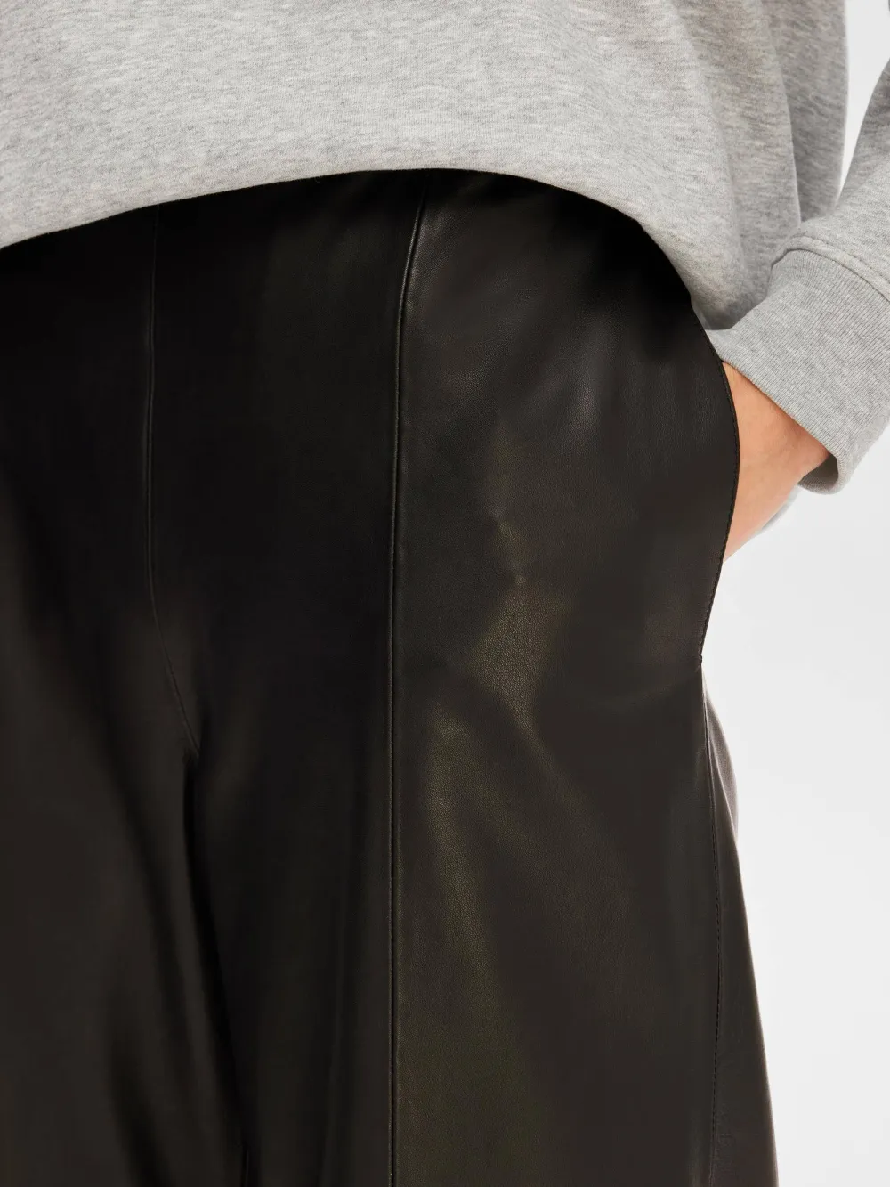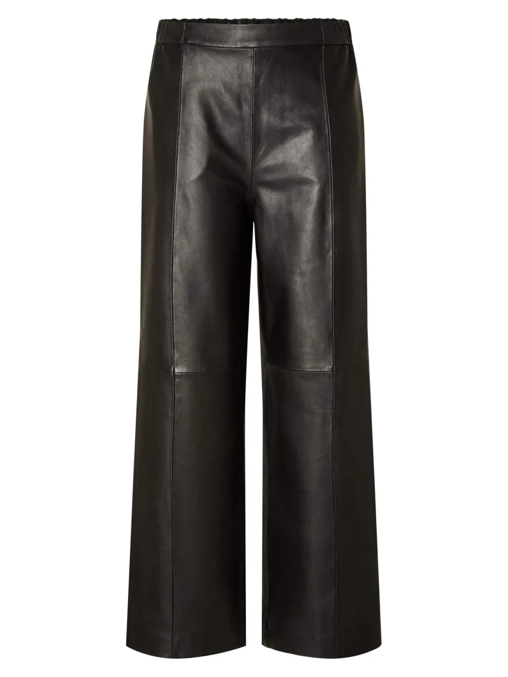 Housut on valmistettu pehmeästä ja joustavasta lampaannahasta, ja niissä on tyylikäs ulkonäkö, jota korostavat paneloidut ompeleet, ja ne ovat riittävän monipuolisia käytettäväksi aamusta iltaan.