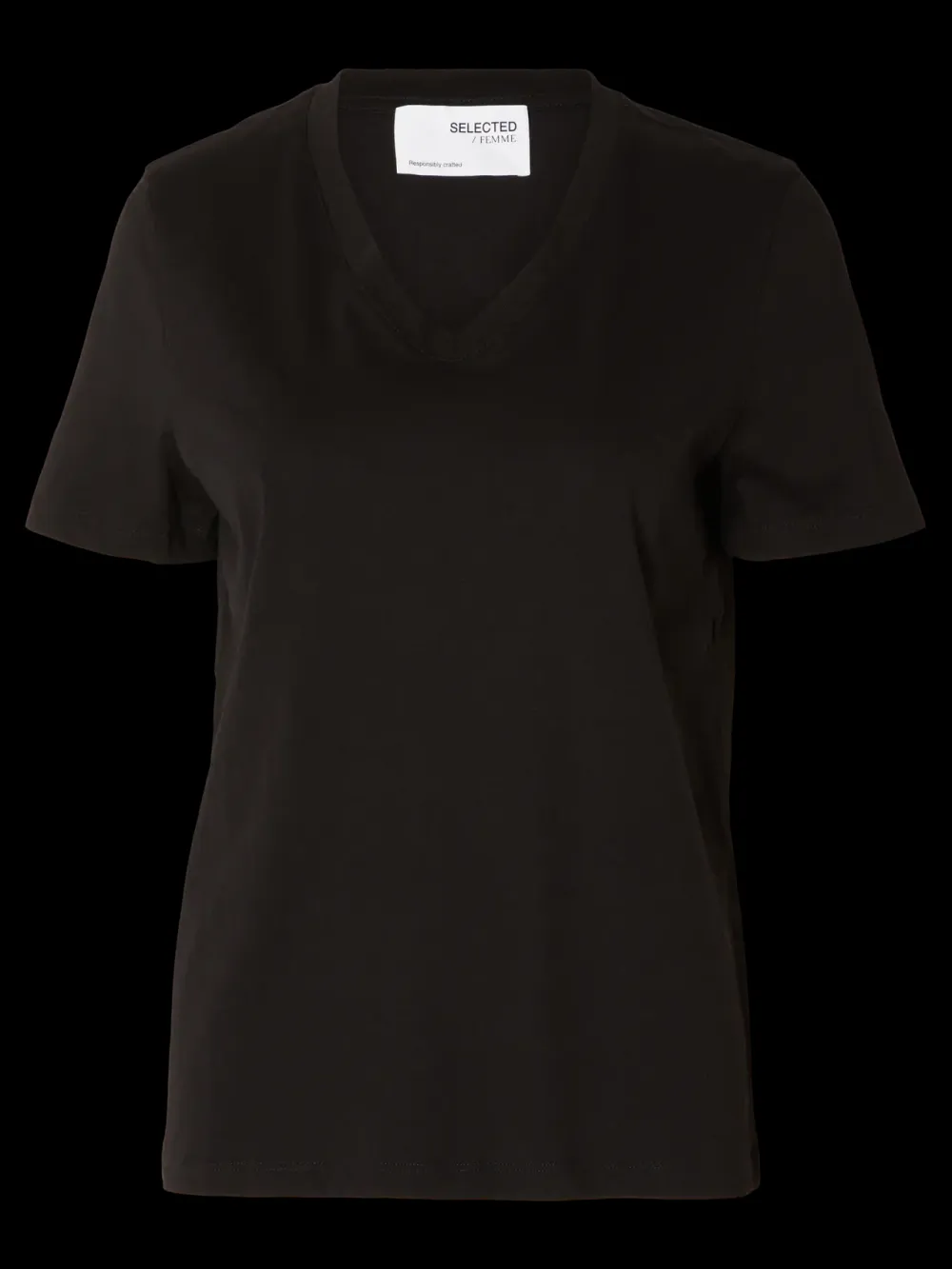 Naisten lyhythihainen T-paita, jossa V- pääntie. 100% luomupuuvillaa. Regular fit.