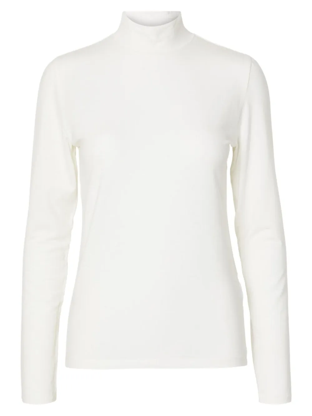 Selected Femmen korkeakauluksinen pitkähihainen paita. Valmistettu mukavasta ja joustavasta materiaalista, mikä tekee siitä erittäin helpon pukea. Yhdistä se korkeavyötäröisiin farkkuihin ja ruudulliseen bleiseriin. – Slim fit – Korkea kaulus – Joustava