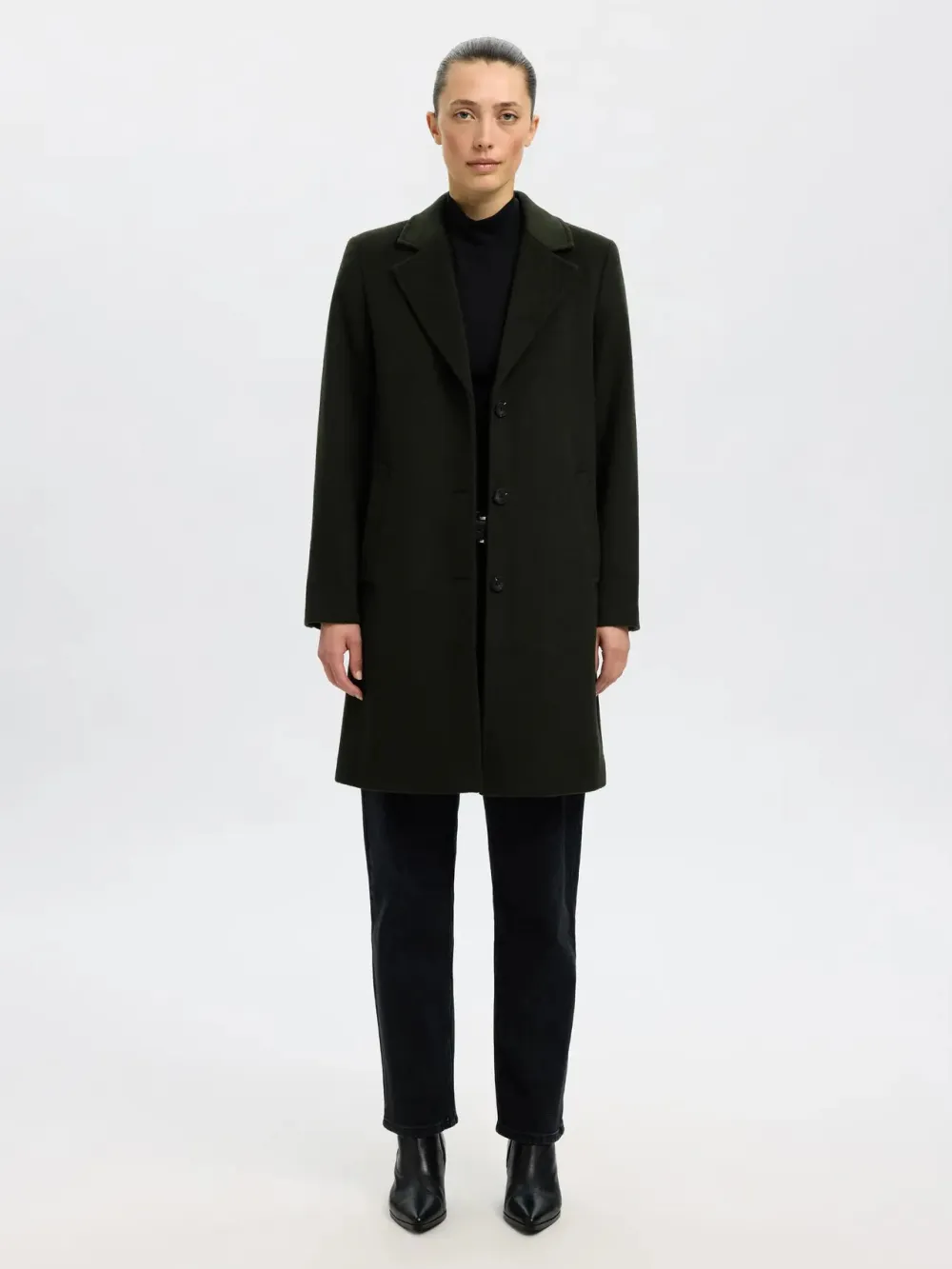 Tämä villasekoitetuinen takki on klassikko jokaisen naisen vaatekaapissa. Lämpimästä villasekoitteesta valmistettu takki on yhtä aikaa strukturoitu ja viimeistelty. Yhdistä se räätälöityjen housujen ja nahkaisten ballerinakenkien kanssa.