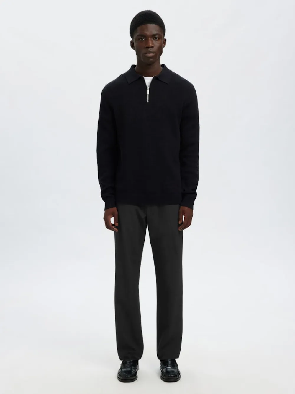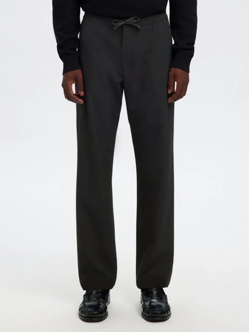 Selected 196 Straight Fit Trousers on monikäyttöinen ja tyylikäs miesten suorat housut, jotka yhdistävät huolitellun ilmeen ja käyttömukavuuden arkeen ja smart‑casual‑tyyliin. Housuissa on elasticated waistband eli joustava vyötärö, jonka kiristysnyöri takaa mukavan istuvuuden ilman rajoittavaa tuntua. Mid‑waist‑vyötärö sekä suora lahjemalli tekevät näistä housuista helposti yhdistettävän esimerkiksi T‑paidan ja tennareiden kanssa rennompaan tyyliin tai kauluspaidan ja pukineiden kanssa siistimpään kokonaisuuteen. Edessä on faux fly ‑yksityiskohta, takataskut, ja design on minimalistinen mutta laadukas, sopien moniin eri tyyleihin ja tilanteisiin.