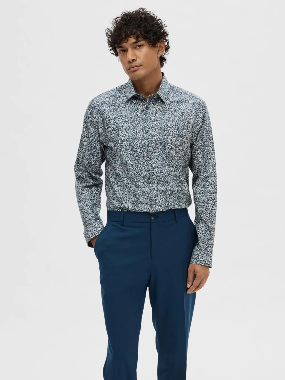 Miesten tyylikäs kuviollinen kauluspaita, slim fit -mitoituksella. Kapealinjainen kauluspaita on valmistettu puuvillasta, paidassa napitus edessä.