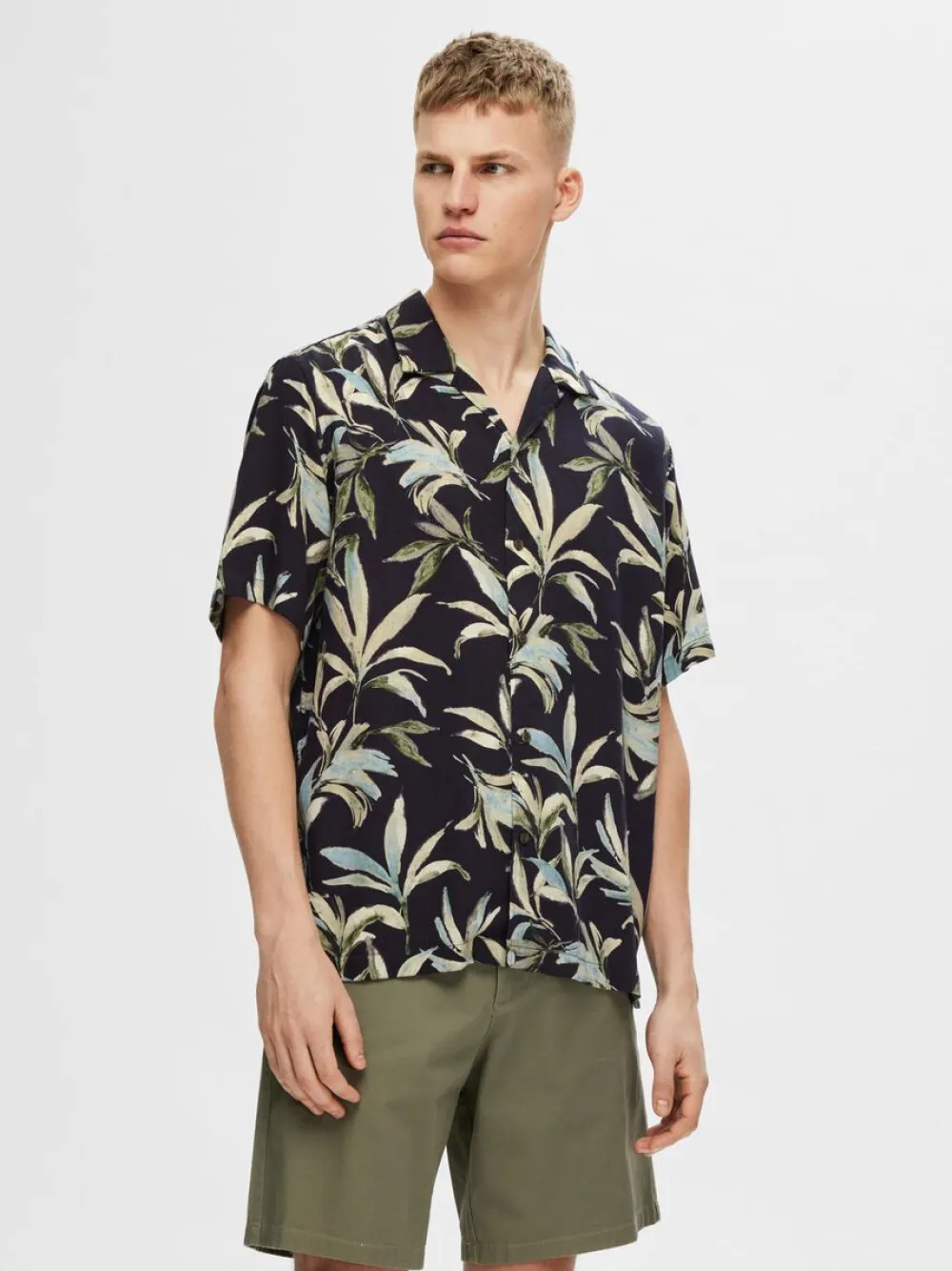 – Levitetty kaulus – Edessä napitus – Lyhyet hihat – Painettu muotoilu – Valmistettu pellavasta – Normaali istuvuus