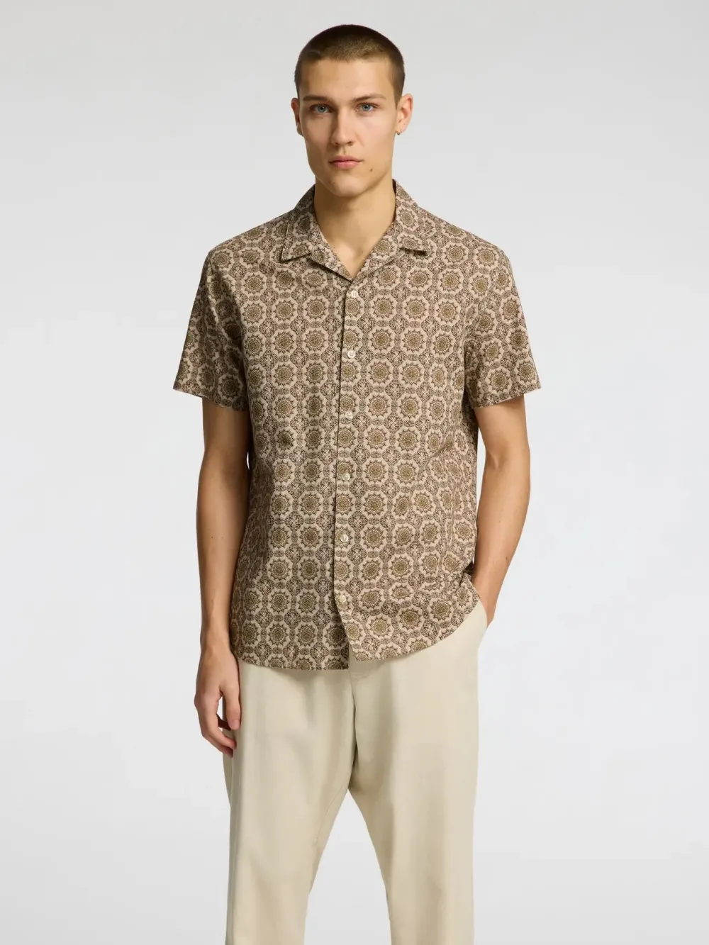 Miesten kauluksellinen paita puuvillan ja pellavan sekoitetta. Normaali istuvuus. .