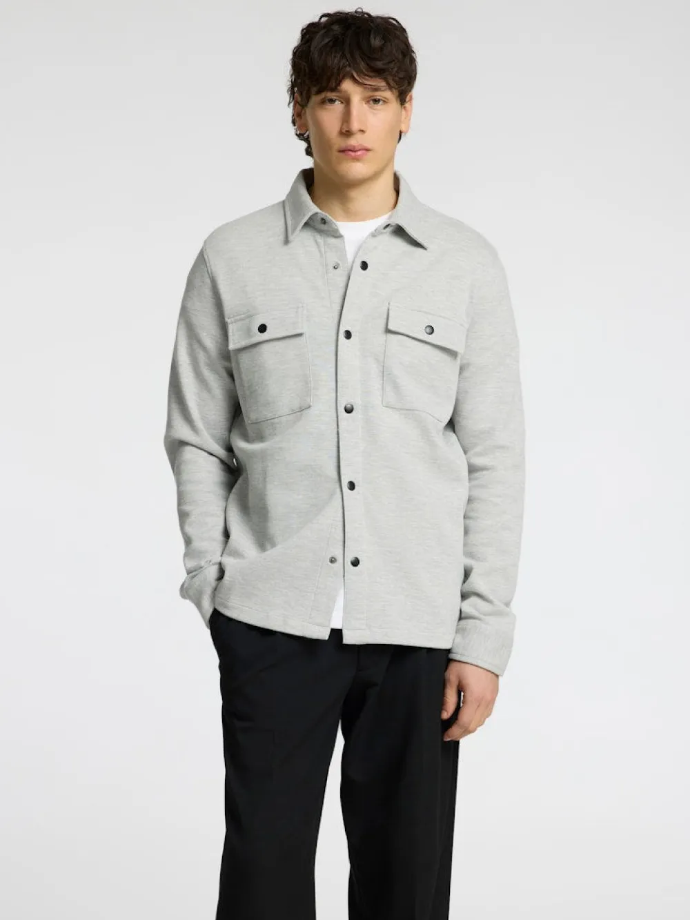 Selectedin rento ja trendikäs paitatakki. Kaulukset ja nepparikiinnitys edessä. Läpälliset rintataskut nepparilla. Materiaali joustavaa ja pehmeää luomupuuvillasekoitetta.