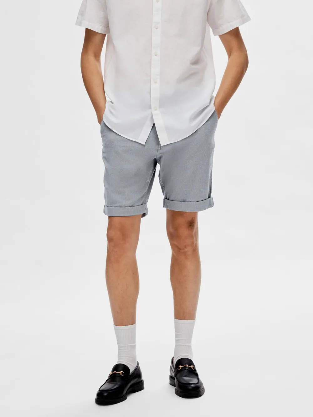– Slim fit istuvuus – Käännetyt lahkeensuut – Vyölenkit – Sivutaskut – Vetoketju- ja nappikiinnitys
