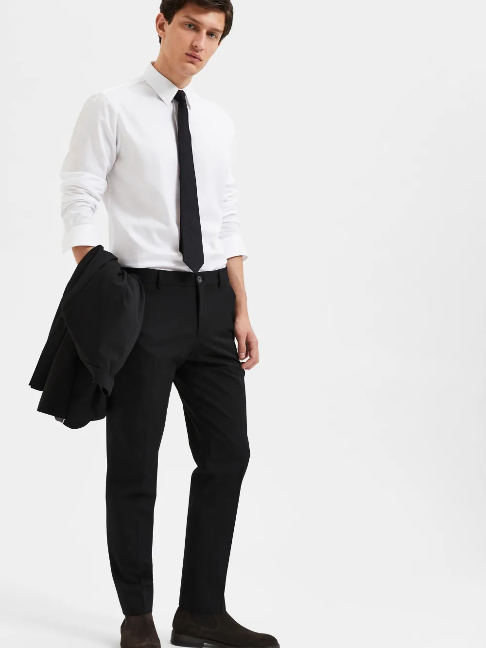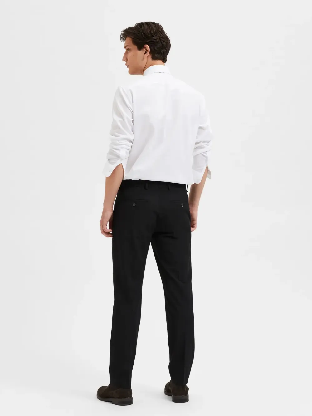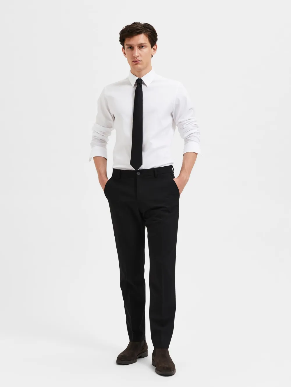 Selected Homme miesten yhdistelmähousut. – Edessä vetoketju ja nappikiinnitys – Vyölenkit – Viistot sivutaskut – Takataskut napeilla – Slim fit – Nilkkapituus