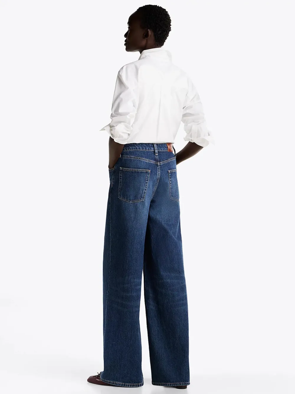 Nämä Tommy Hilfigerin imartelevat farkut on leikattu kulutetusta, jäykästä denimikankaasta, ja niissä on leveät lahkeet ja korkea vyötärö.