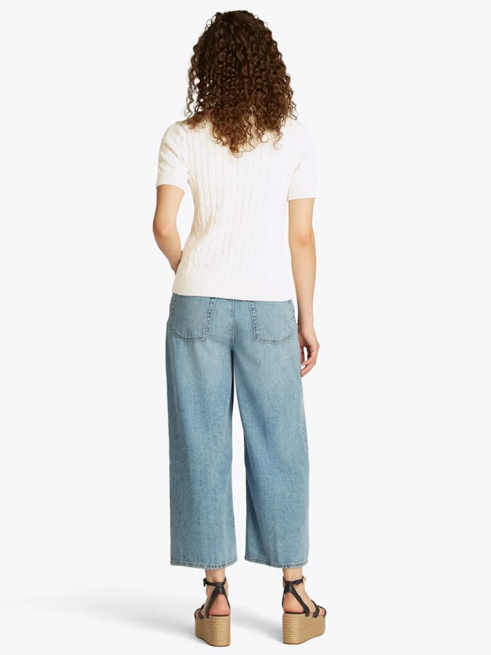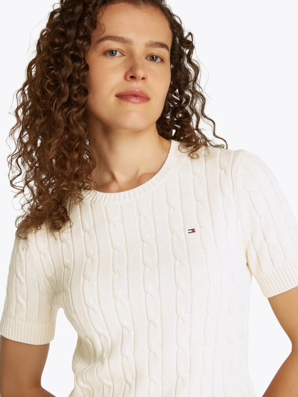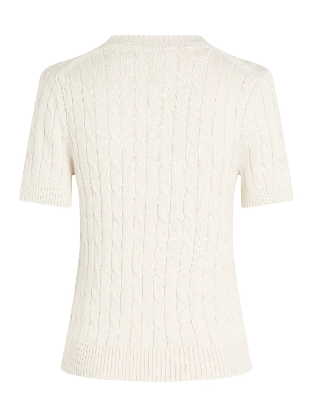 Tässä puuvillasta valmistetussa palmikkopuserossa on tyylikäs lyhythihainen siluetti.
