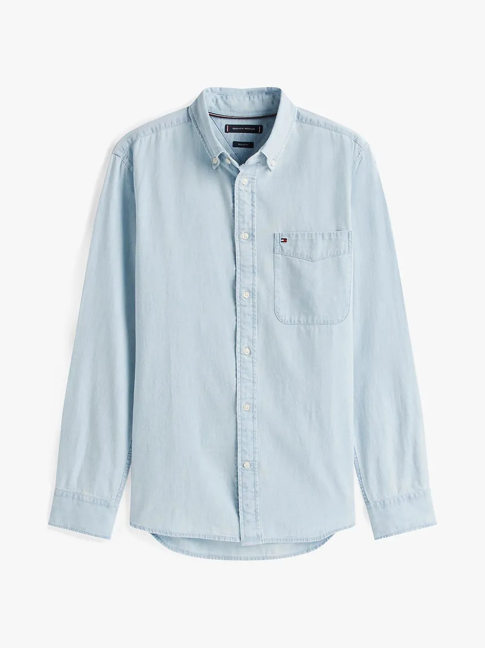 Tommy Hilfiger Chambray-kauluspaita on tyylikäs ja monikäyttöinen valinta miehen vaatekaappiin. Tämä chambray-kankainen paita on valmistettu 100 % puuvillasta, mikä tekee siitä hengittävän ja miellyttävän käyttää niin arjessa kuin rennommissa tilaisuuksissa.