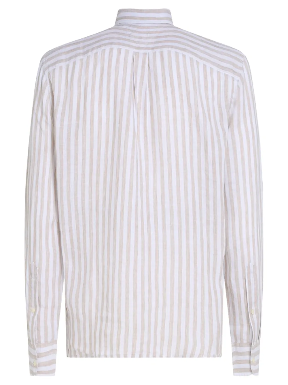 Tämä Tommy Hilfigerin miesten kauluspaita on valmistettu 100 % laadukkaasta pellavasta, tarjoten hengittävyyttä ja keveyttä lämpimiin päiviin. Beige-valkoinen raitakuosi ja hienovarainen struktuuripinta tuovat klassiseen designiin modernia ilmettä.