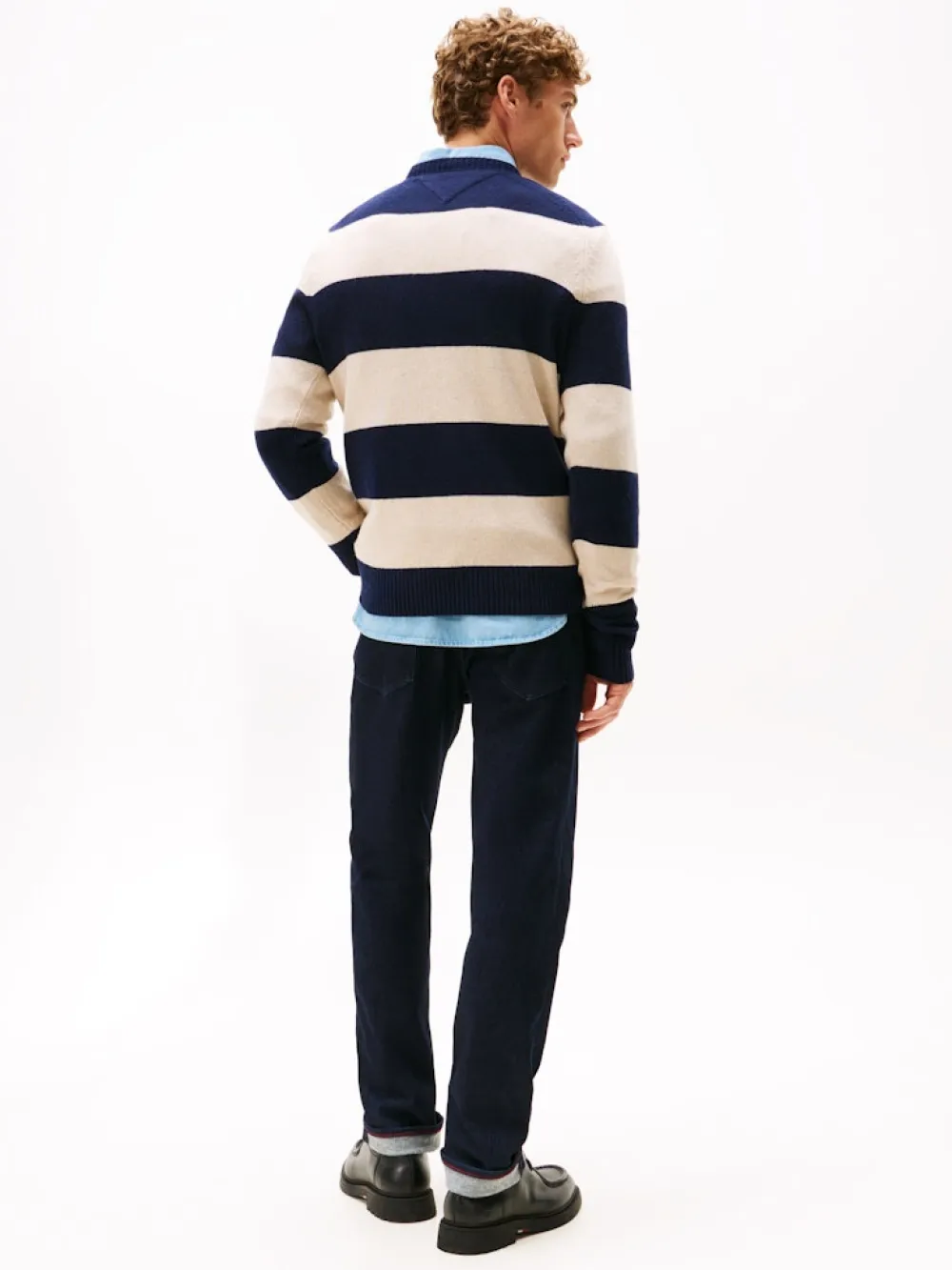 Tämä tyylikäs pyöreäkauluksinen neulepusero on valmistettu puhtaasta lampaanvillasta, mikä antaa sille ensiluokkaisen tuntuman, ja hienovaraiset lippuyksityiskohdat antavat sille tunnusomaisen silauksen.