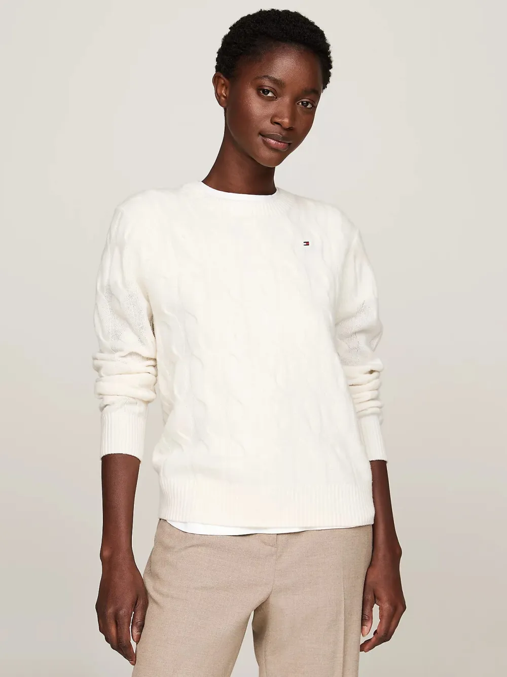 Tommy Hilfiger ihana 100% villainen neule. Pehmeä materiaali ja klassinen palmikkoneulos regular fit istuvuudella. Joustinneulotut kaulus, hihansuut ja helma.