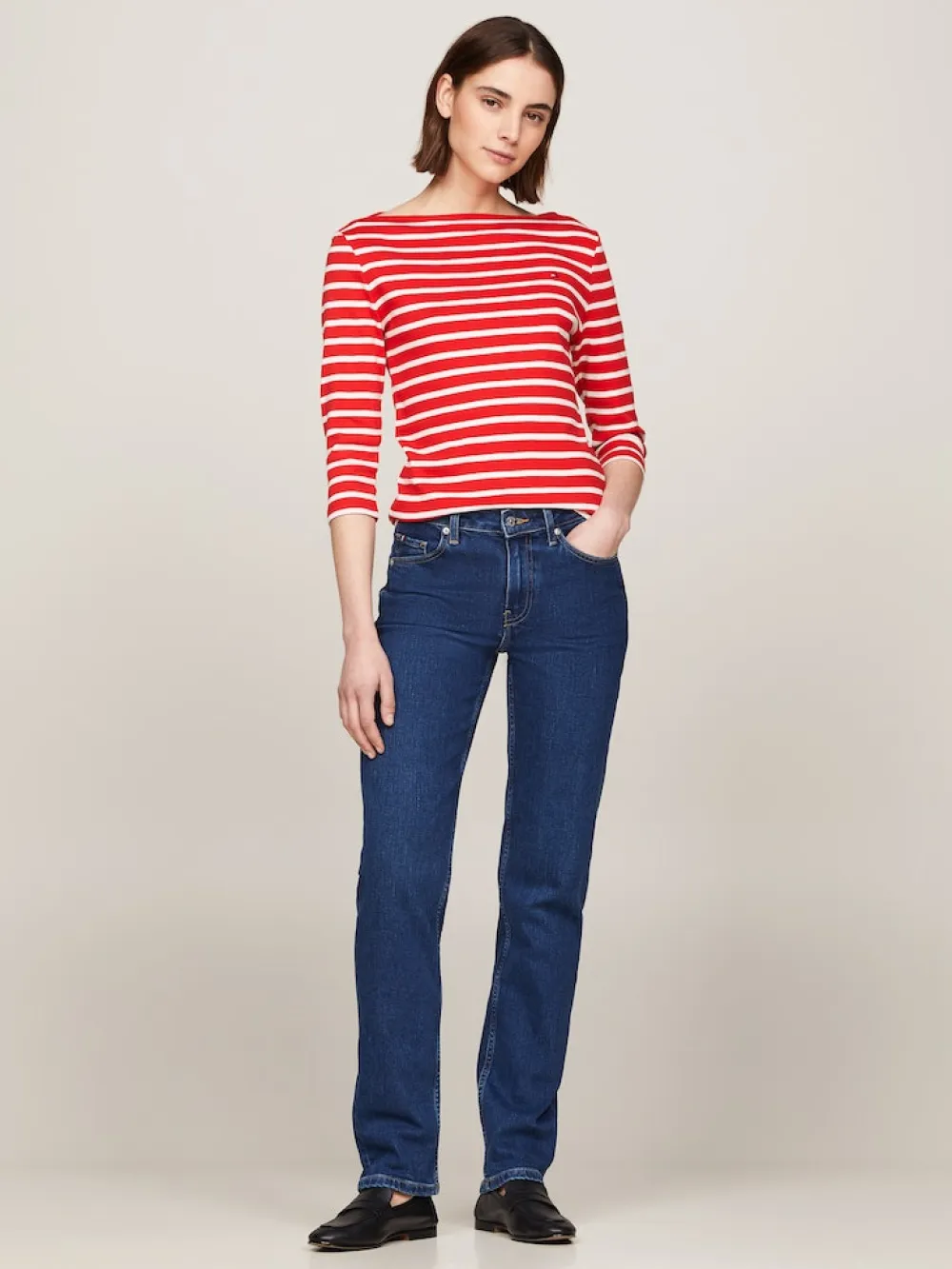 Tommy Hilfiger paita slim fit istuvuudella ja 3/4 hihoilla. Niskassa Tommy Hilfiger nauha, ja rinnassa Tommy Hilfiger lippu brodeeraus.