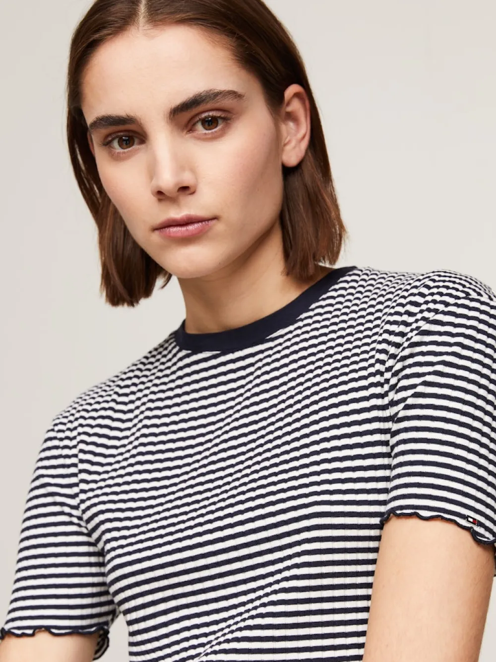 – Joustavaa ja kestävää materiaalia – Slim fit – Pyöreä pääntie – Rypytetyt yksityiskohdat hihansuissa ja helmassa – Tommy Hilfiger -brändäys.