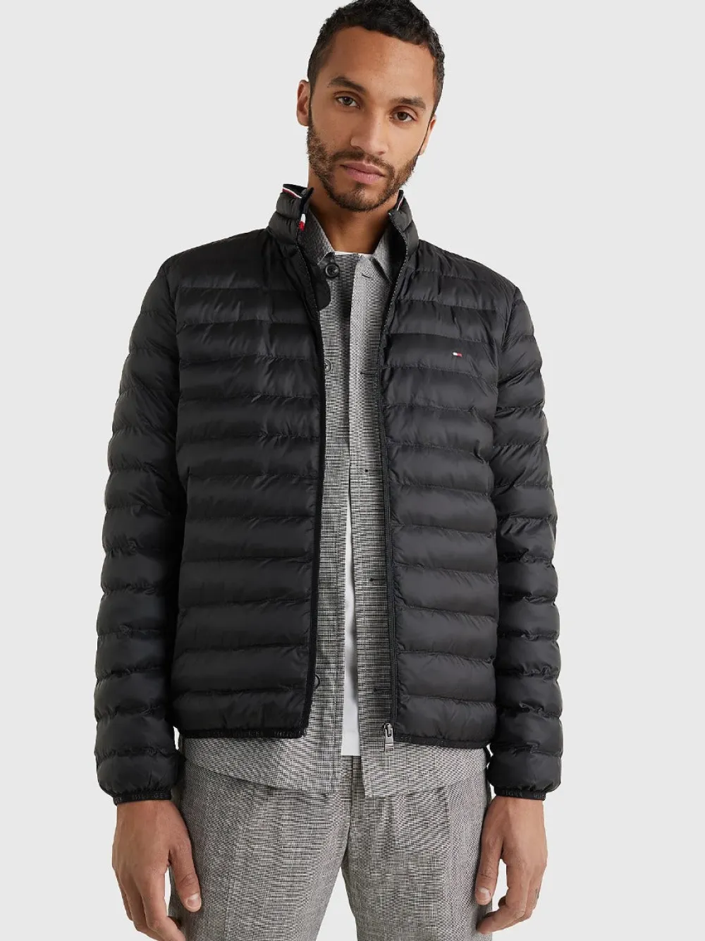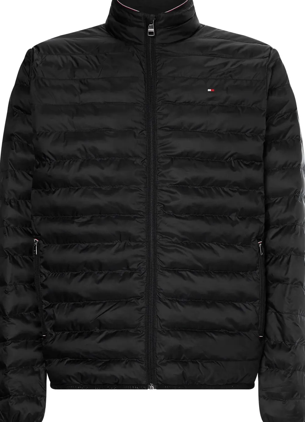 Tommy Hilfigerin takissa on vaakaan ommeltu tikkaus ja pystykaulus. Rinnassa on pieni logo. Materiaali on vettähylkivää. Takissa on taskut reunoilla. Mitoituksena normaali.
