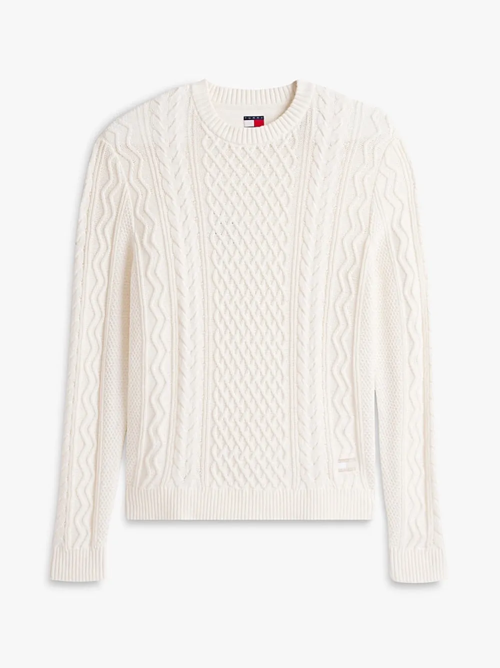 Tämä neulepusero yhdistää kapean istuvuuden klassiseen palmikkoneuleeseen, luoden näyttävän ja ajattoman ilmeen.