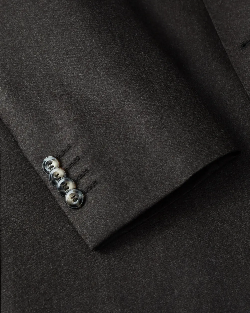 Tummanruskea irtotakki monipuoliseen käyttöön. Upea Vitale Barberis Canonicon villaflanelli on huippulaadukas hengittävyys- ja lämpöominaisuuksiltaan. Käytä irtotakkina erilaisten housujen kanssa tai puvuntakkina.
