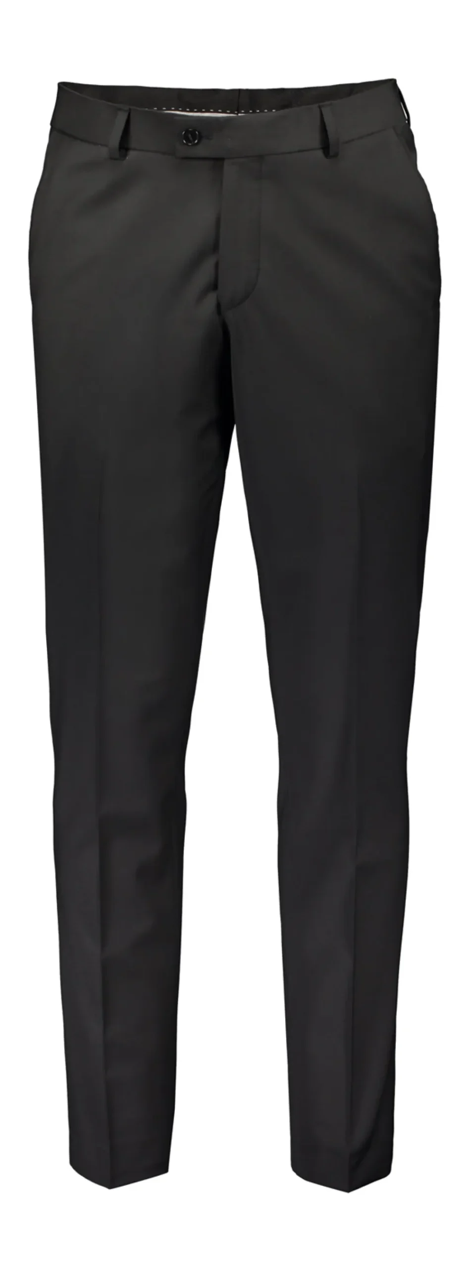 Turo Tailorin tyylikkäät, kapealinjaiset puvunhousut. Valmistettu laadukkaasta materiaalista. Kankaassa on Kestävää polyesteria, laadukasta villaa sekä joustavaa elastaania. Kapealinjaisissa housuissa on vyölenkit vyötäröllä, sivutaskut sekä napilliset takataskut.