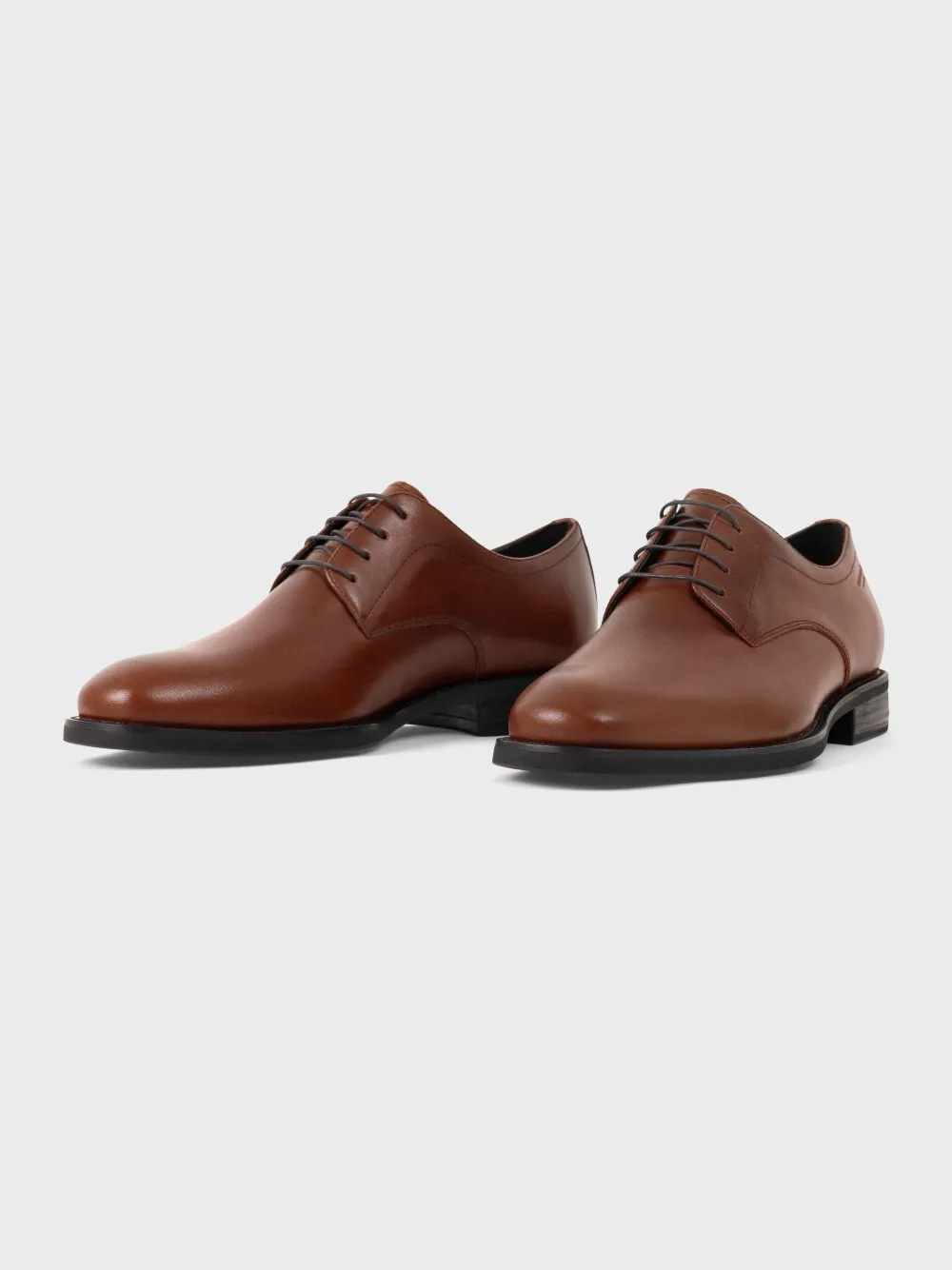 Mario on klassiset Derby-kengät hienostuneella ilmeellä. Mustasta nahasta valmistetuissa kengissä on klassinen derby-nauhoitus, pyöreät kärjet ja nahkaiset pohjalliset. Kengissä on myös nahkavuori. Matalat korot ovat 30 mm.