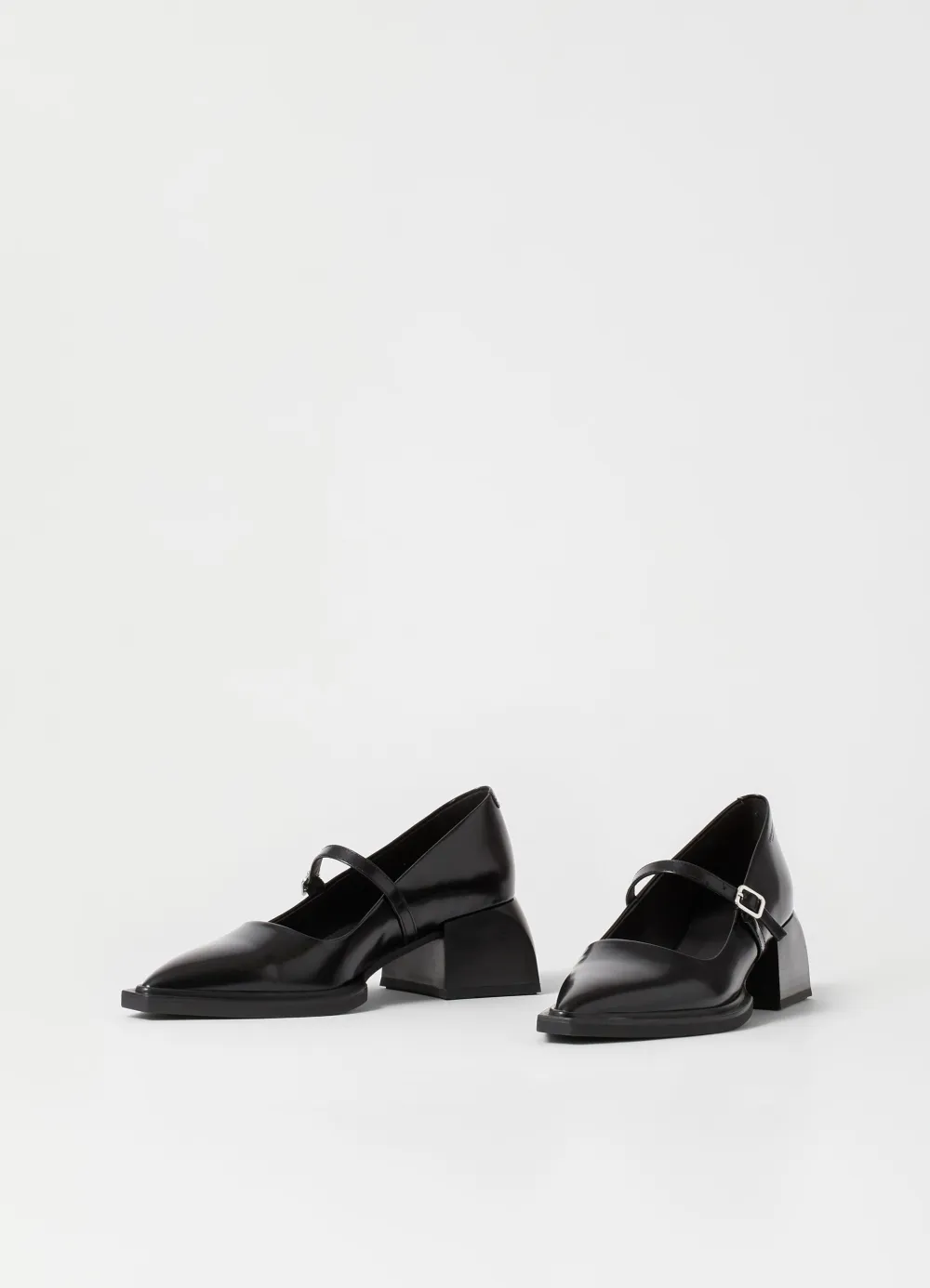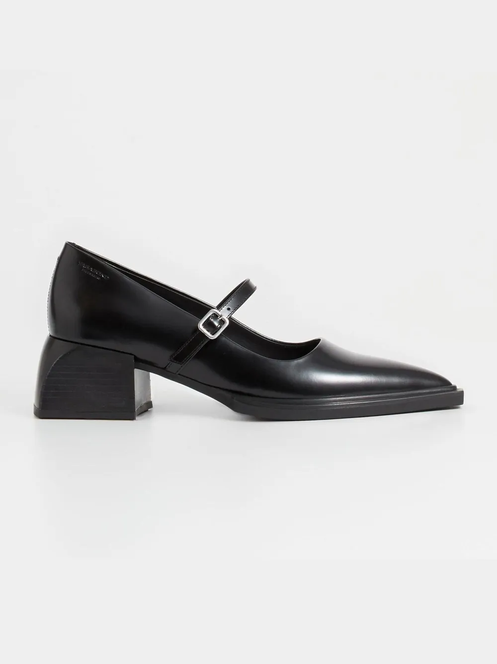 Vivian on modernit Mary Jane -avokkaat näyttävällä siluetilla. Tyyli on valmistettu mustasta kiillotetusta nahasta ja sen yksityiskohtiin kuuluvat terävät kärjet ja tyylikäs nilkkahihna hopeanvärisellä soljella. Veistokselliset korot ovat 55 mm.