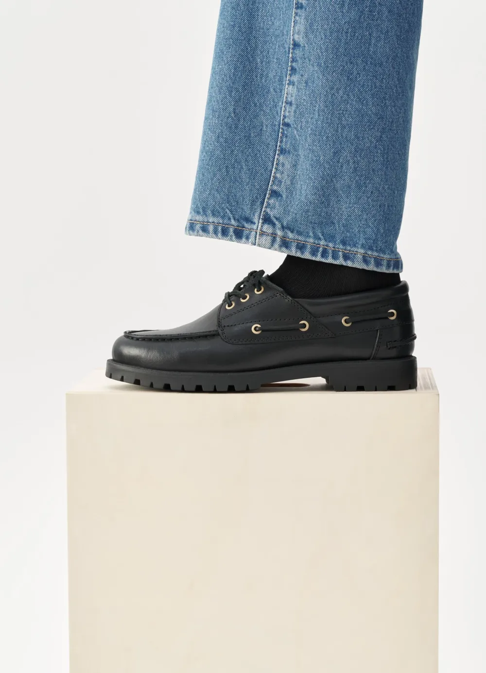 Joslyn on päivitetyt purjehduskengät. Tyyli on valmistettu mustasta nahasta ja siinä on nahkanauhat. Korotetuissa ulkopohjissa on 14 mm matala korko.
