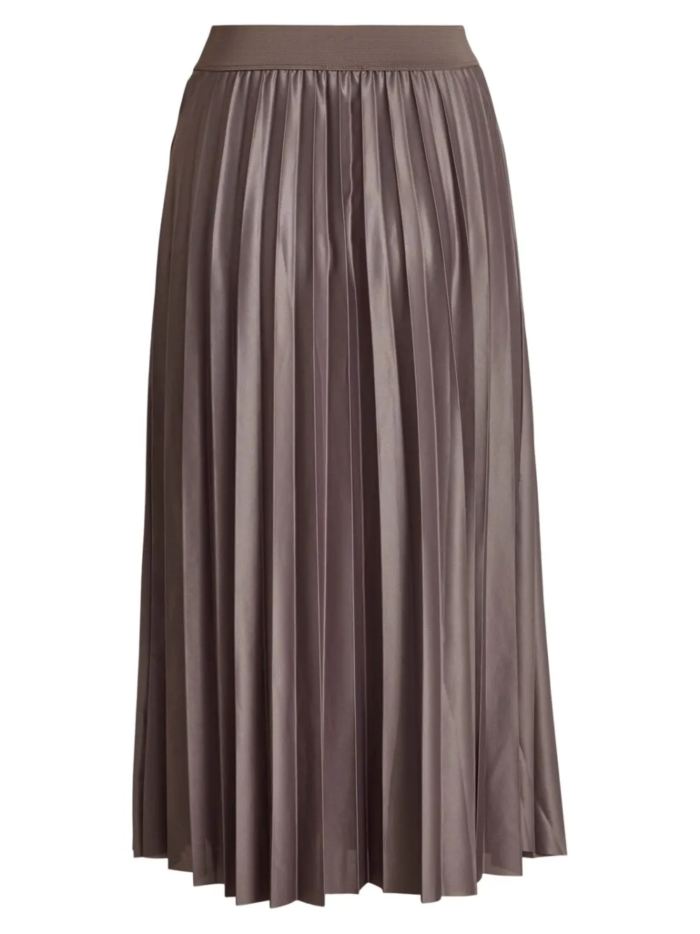 Vilan kaunis midimittainen hame, jossa on kiiltävä kangas. Joustava vyötärönauha ja tyylikäs pliseerattu kangas