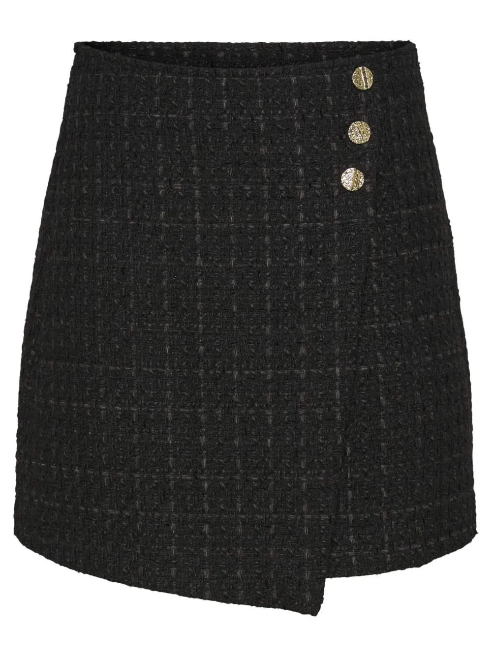 Tweed-kankainen minimittainen kietaisuhame korkealla vyötäröllä.