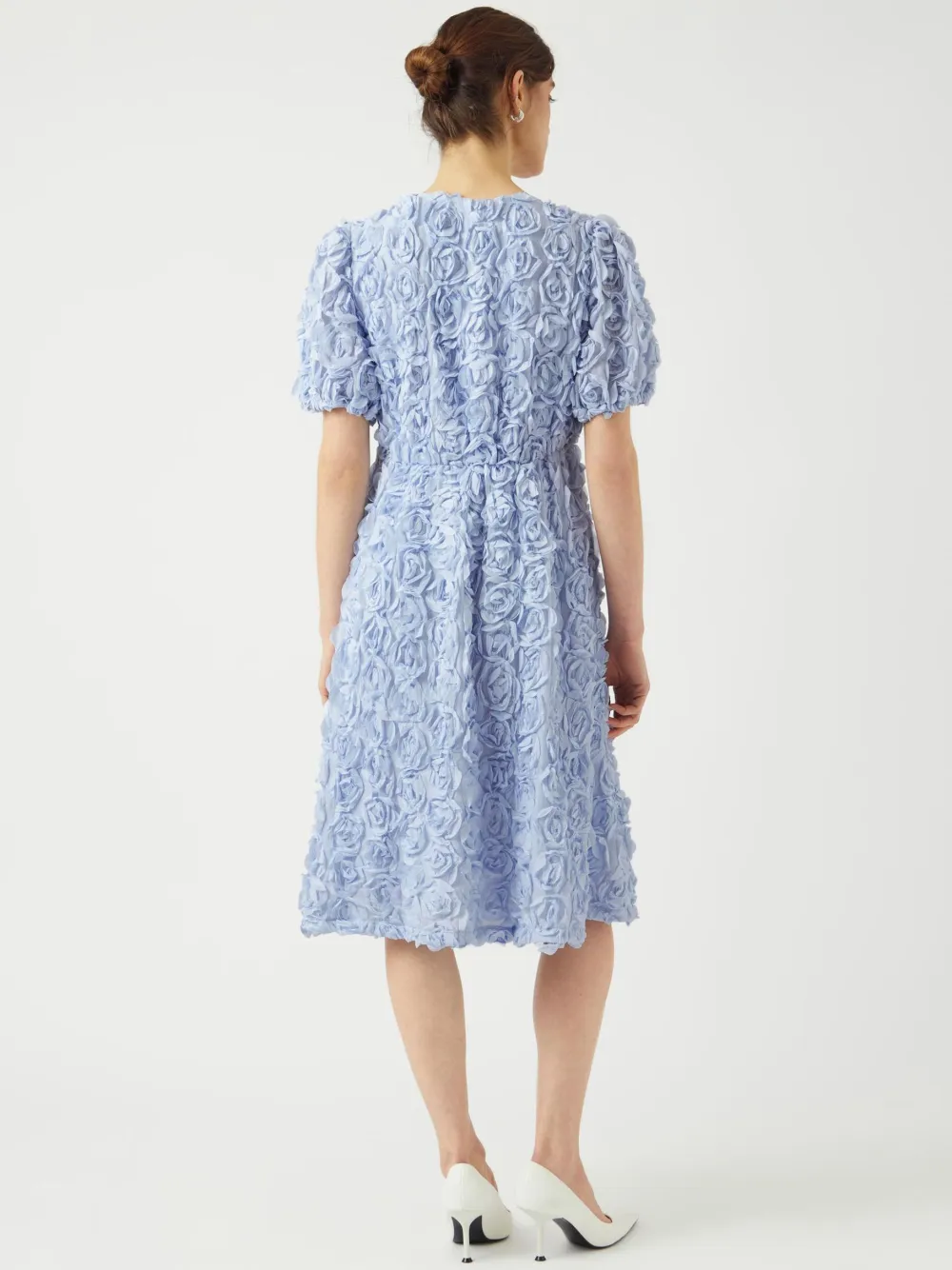 – Tuotetyyppi: juhlamekko – Kaulus: V-kaulus – Hihat: 2/4-hihat – Pituus/koko: midipituinen – Vuori: läpinäkymätön polyesterivuori – Muut yksityiskohdat: 3D-detalji – Malli: Väljä malli