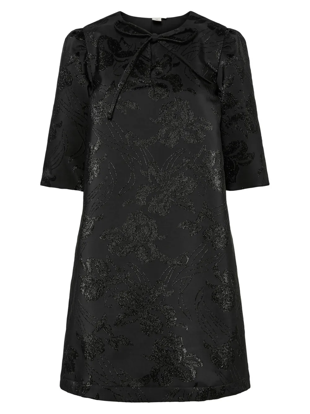 Naisten kaunis minimekko. Pyöreä kaula-aukko koristeellisin nauhoin, lyhyet hihat ja löysä istuvuus.