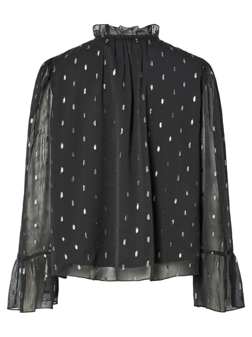 Y.A.S Mena LS Top on tyylikäs pitkähihainen paita, joka on valmistettu kevyestä materiaalista. Siinä on korkea pääntie ja pitkät läpikuultavat hihat, jotka tuovat ilmettä ja keveyttä asuun. Paidassa on hillityt hopeiset pilkut. Täydellinen valinta näyttävään ja mukavaan pukeutumiseen.